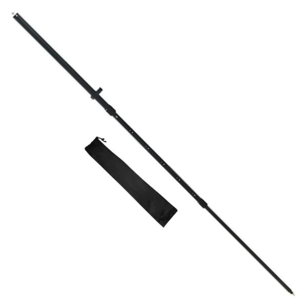 Bastón telescópico de alta calidad fabricado con fibra de carbono industrial, ideal para trabajos topográficos en GNSS o prisma. Diseño robusto, liviano y portátil. Incluye burbuja de nivel y estuche con correa de transporte.