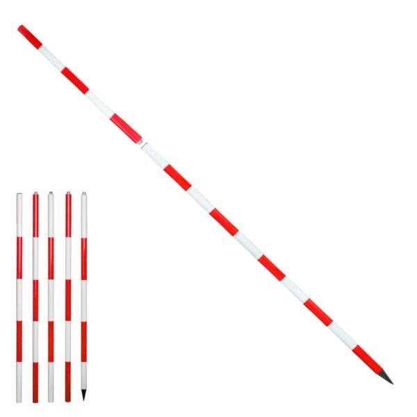 Bastón topográfico telescópico de 5 metros compuesto por 5 secciones de 1 metro cada una. Fabricado en aleación de aluminio engrosado, es ligero, resistente y fácil de transportar. Ideal para levantamientos GNSS y trabajos de campo exigentes.
