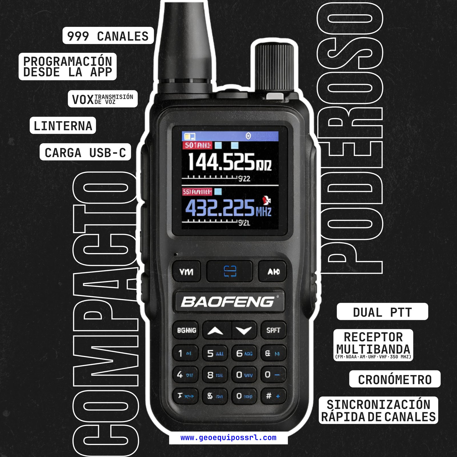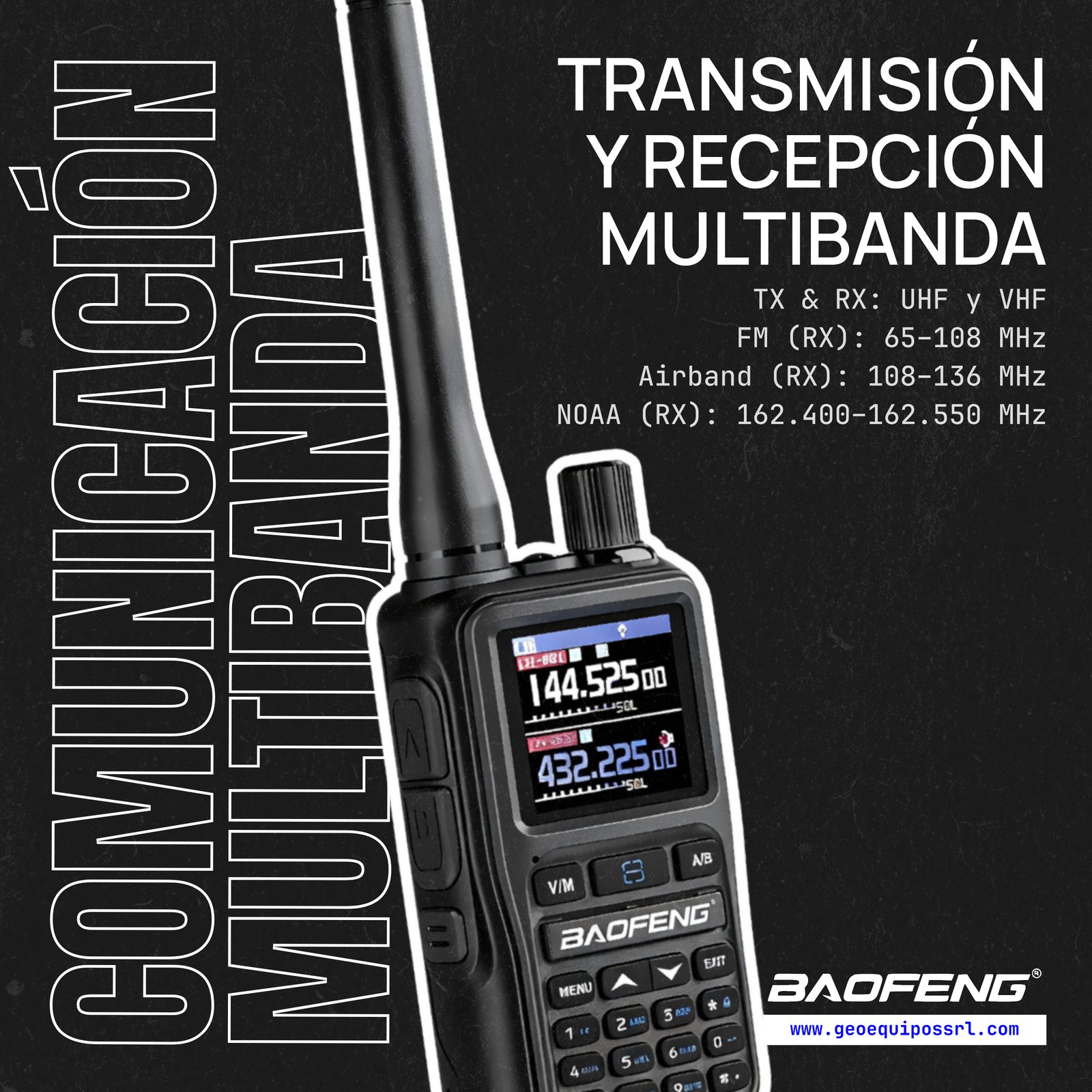 Radio comunicador portátil multibanda diseñado para operaciones profesionales. Ofrece gran cobertura, recepción estable y transmisión confiable. Ideal para trabajo en campo, seguridad y comunicaciones tácticas.