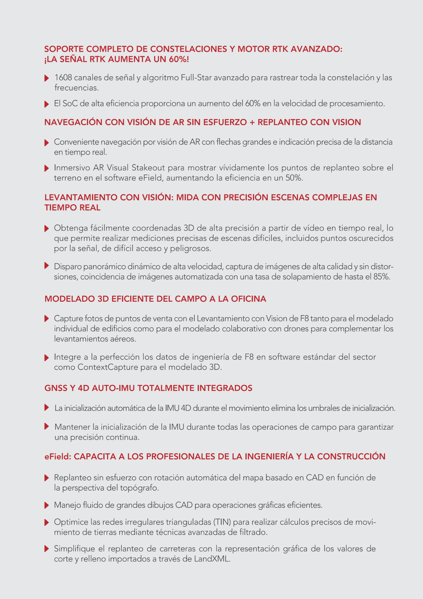 Gracias a su motor RTK avanzado, navegación AR intuitiva y diseño compacto, optimiza los flujos de trabajo en campo y mejora la eficiencia en proyectos de topografía e ingeniería. Ideal para profesionales que buscan agilidad, estabilidad y alto rendimiento en un equipo portátil.