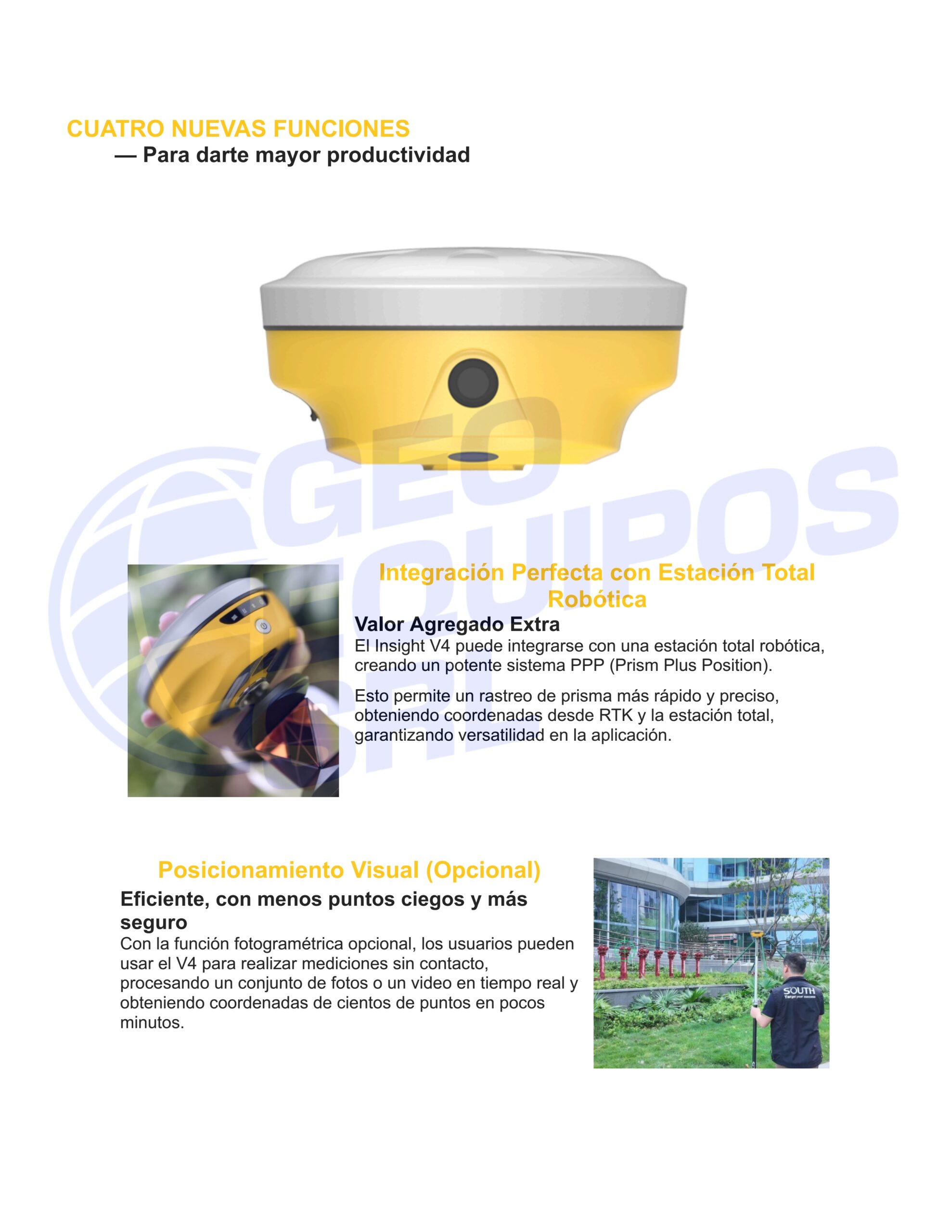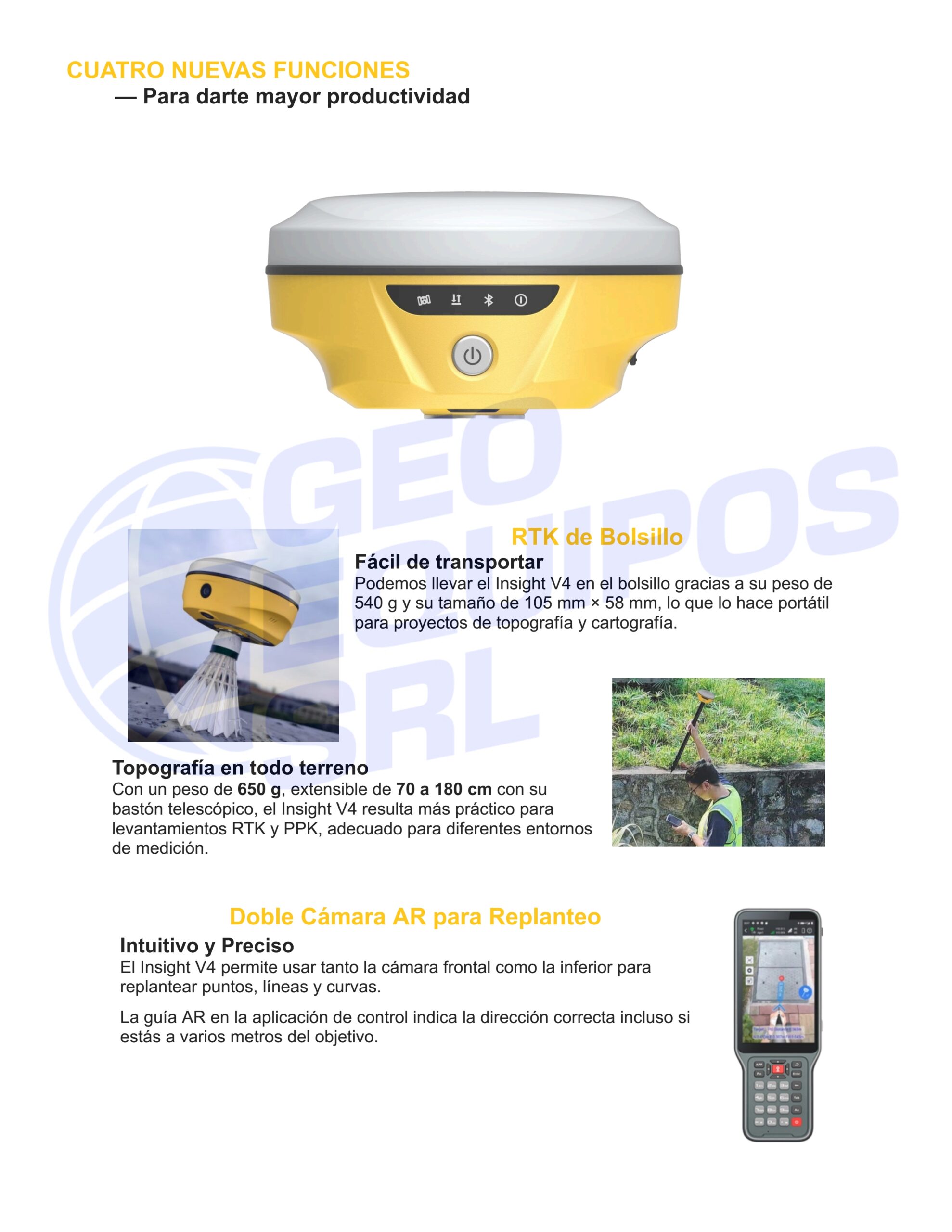 | Cámara | Cámara visual de posicionamiento: 8 MP / Cámara AR de replanteo: 2 MP | |